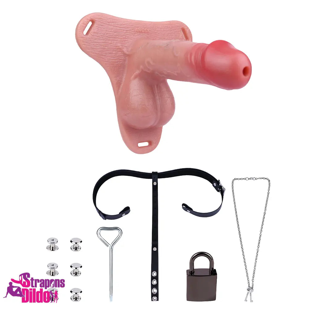 7.48in Strap on Hollow Soft Silicone Cock Cage Dildo For Chastity Dildo