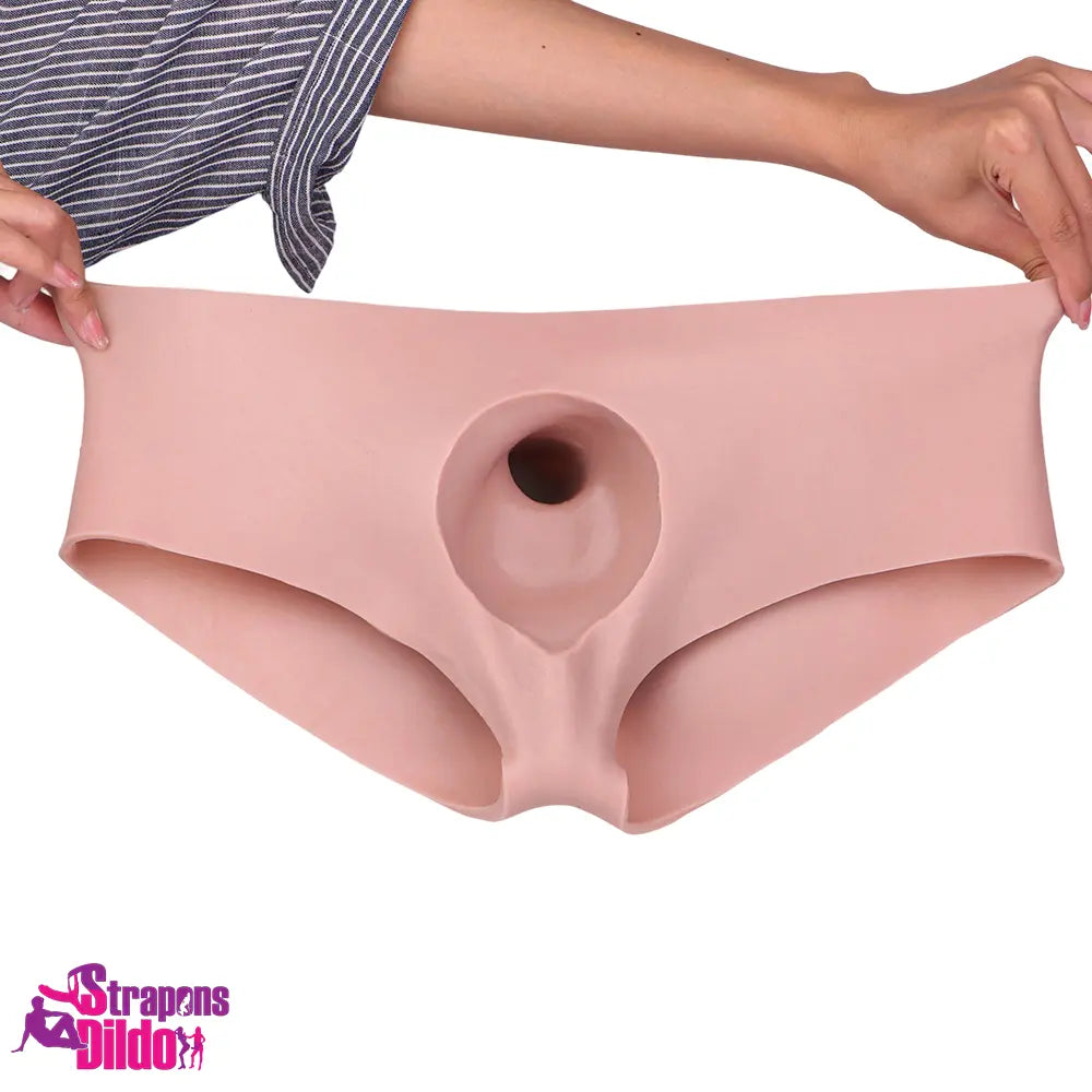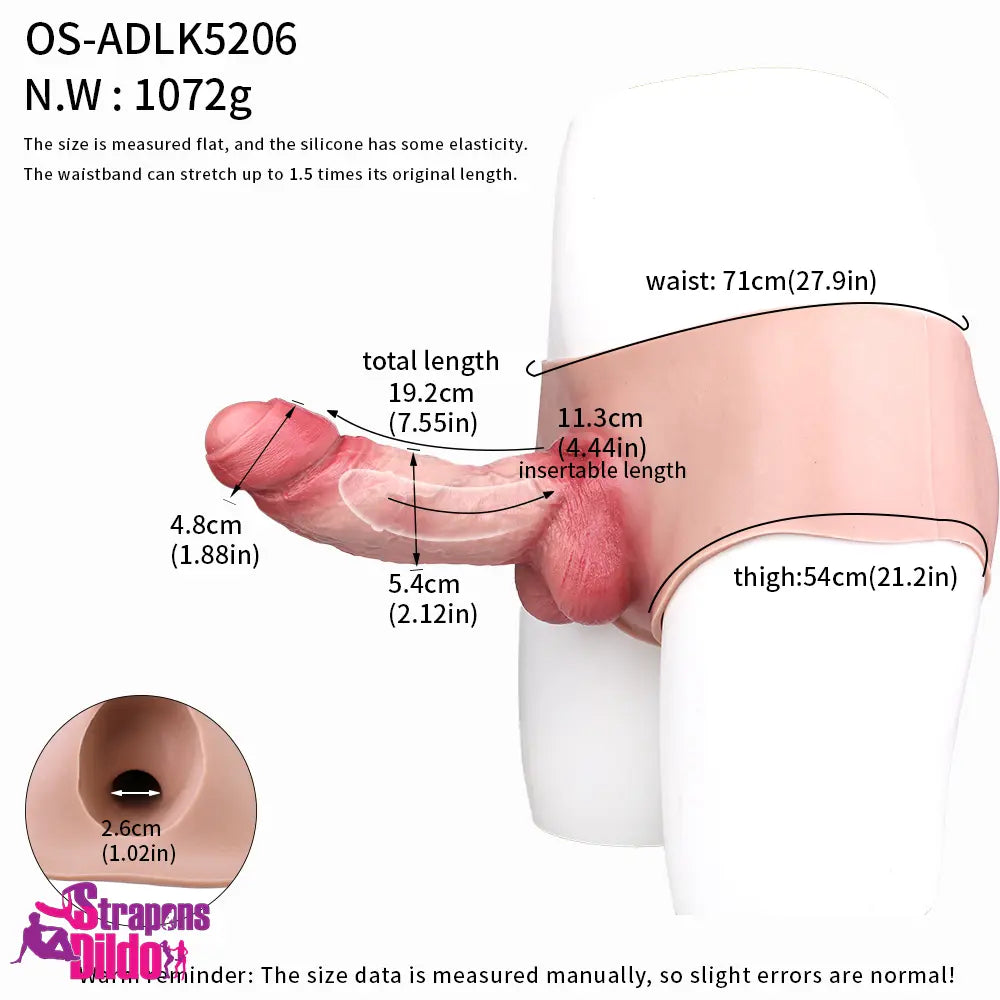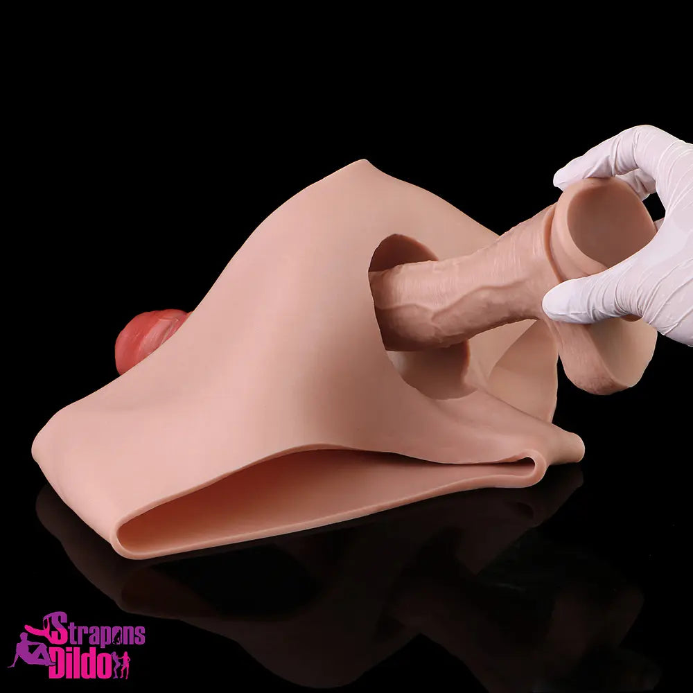 7.55in Wearable Silicone Uncut Dildo Panty Real Skin Hollow Dildo Sleeve