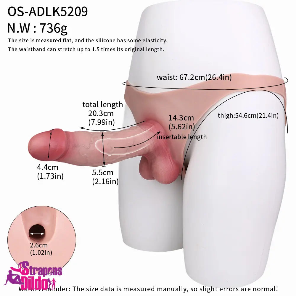 7.99in Wearable Silicone Lifelike Dildo Panty Real Skin Hollow Dildo Sleeve