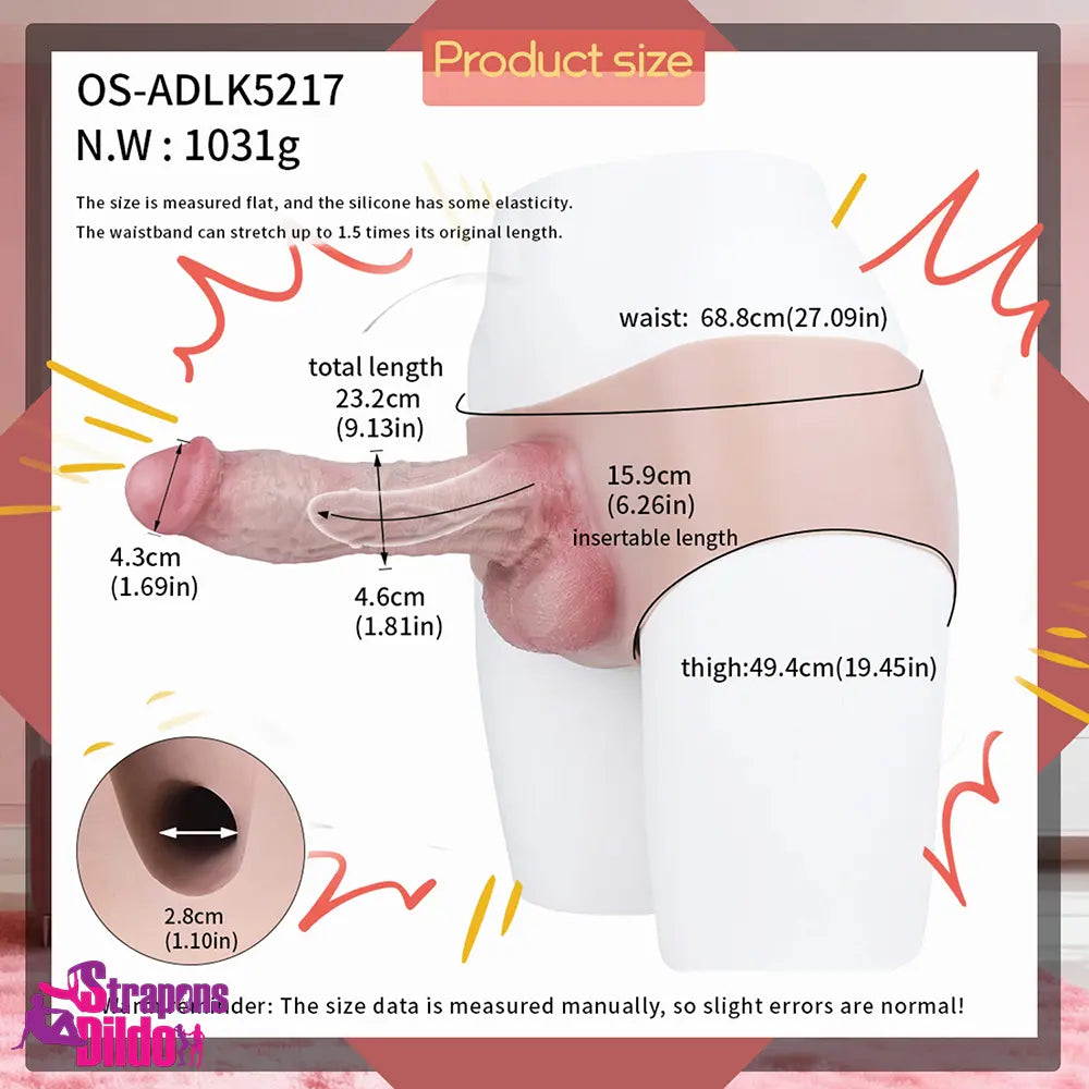 9.13in Real Skin Liquid Silicone Hollow Strap on High-Quality Dildo Panty