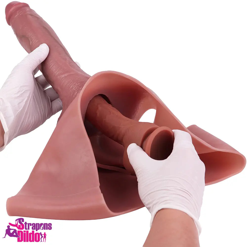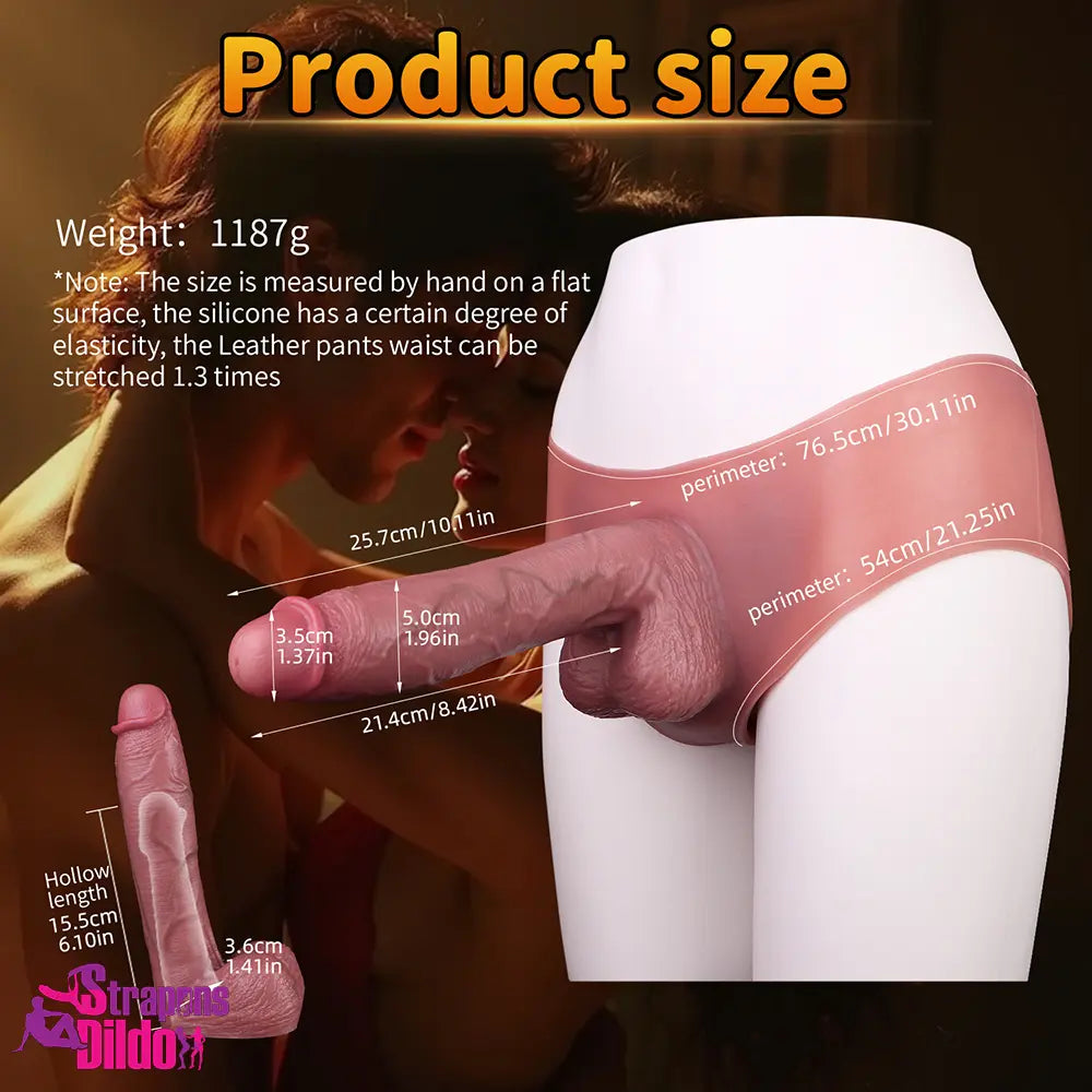 10.11in Hollow Sleeve Strap on Dildo Leather Panty For Women Lesbian