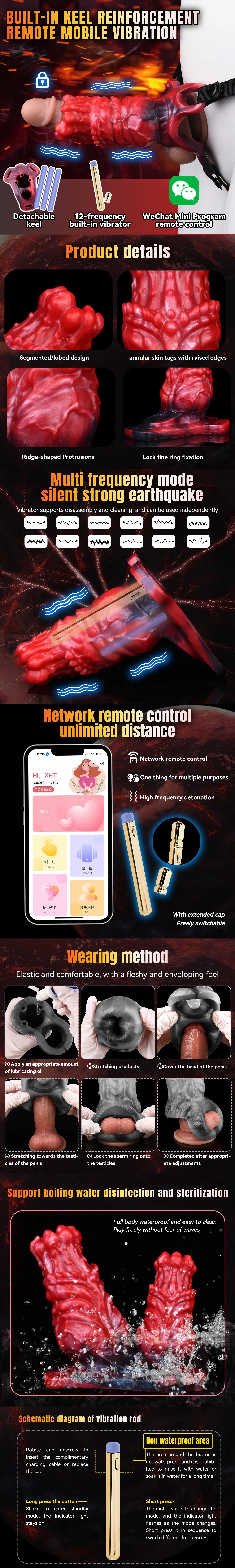 5.55in Odd Hollow Built-in keel Vibration Remote Strap on Dildo Sleeve