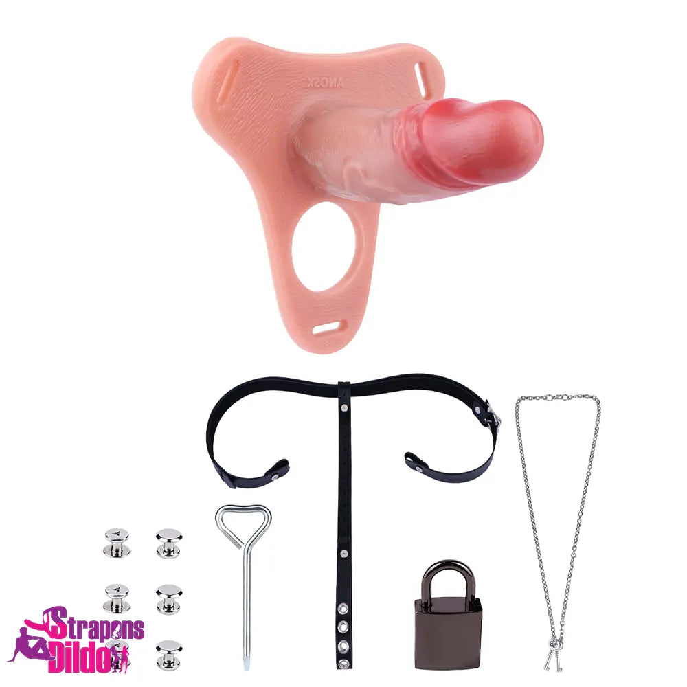 5.78in Strap on Realistic Hollow Silicone Cock Cage Dildo For Chastity