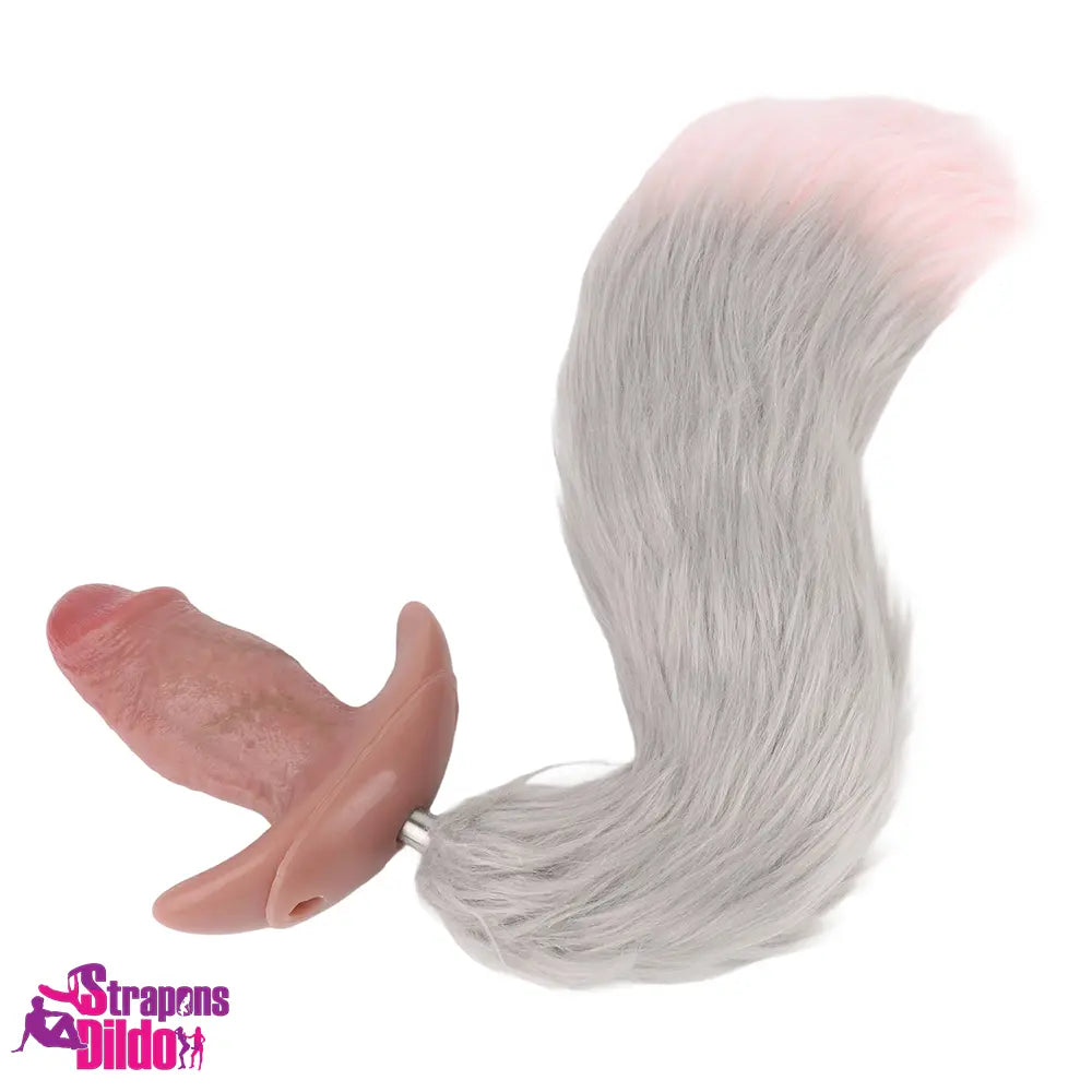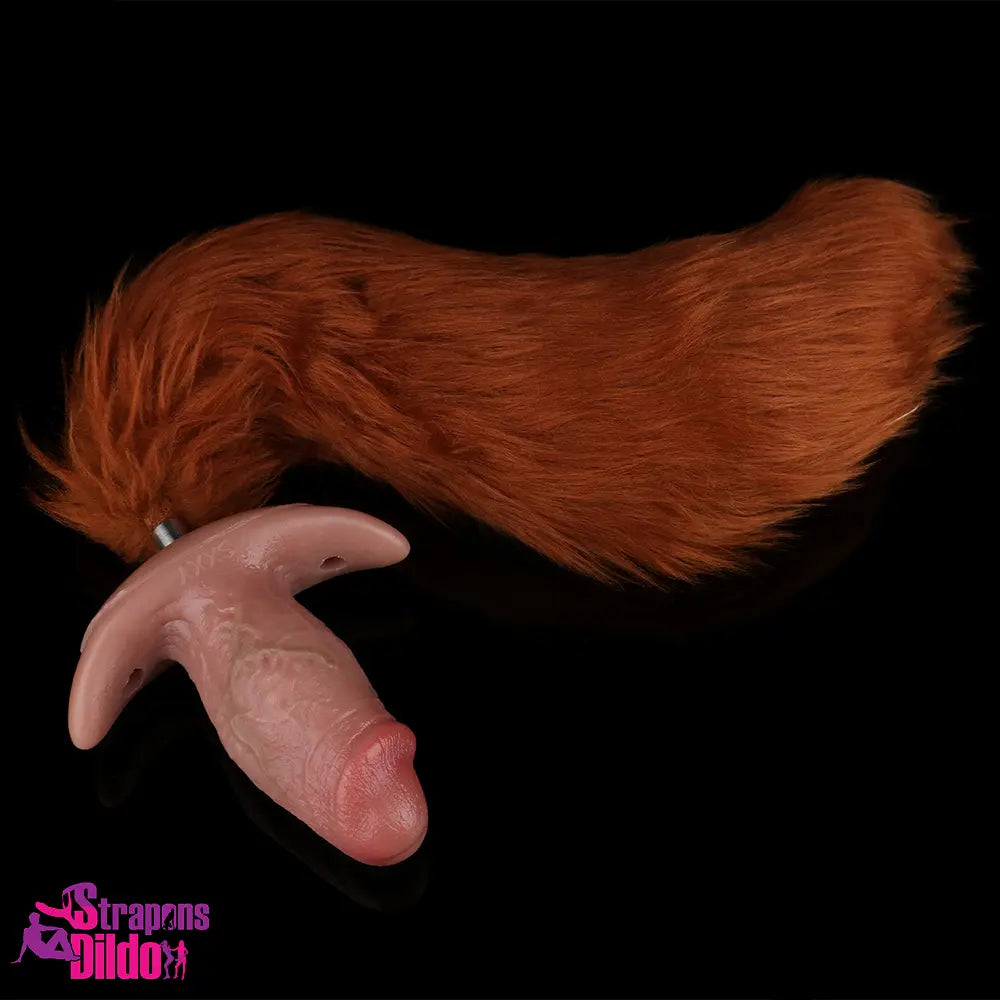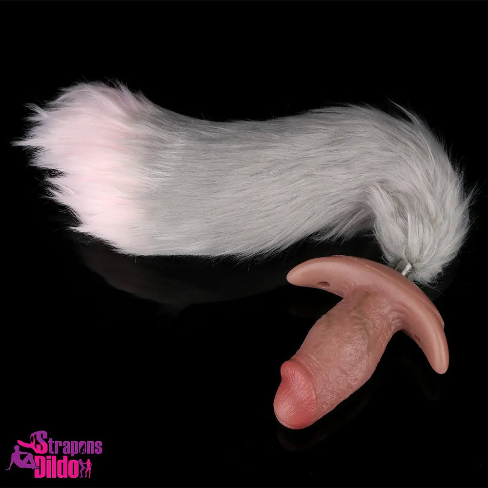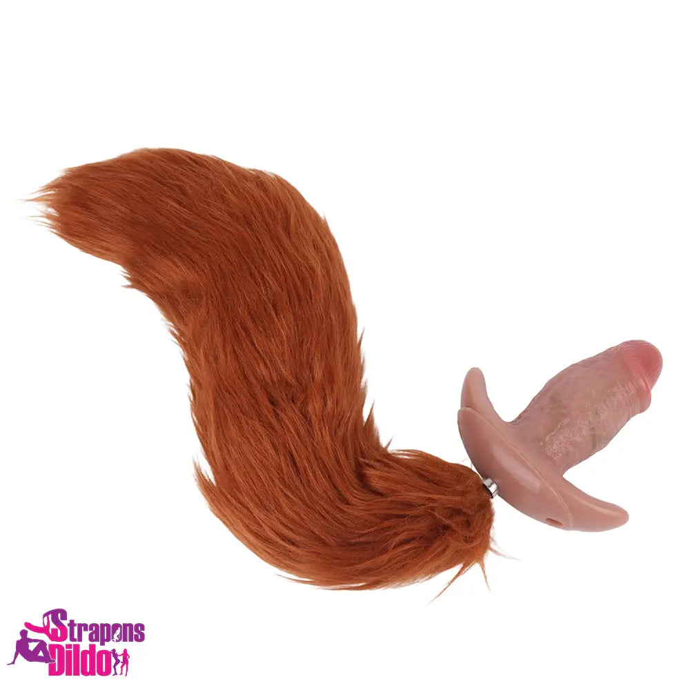 5.8in Hairy Penis 10 Frequency Vibration Strap on Dildo Tail Butt Plug