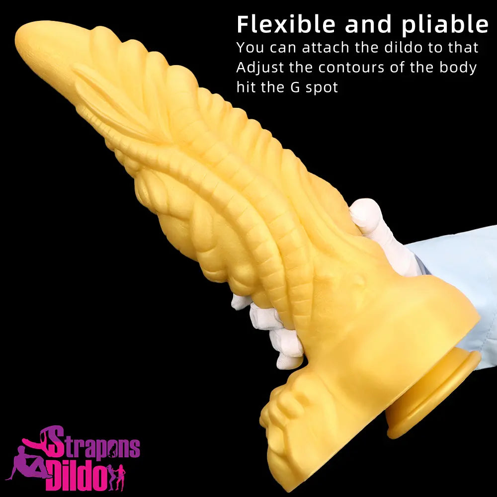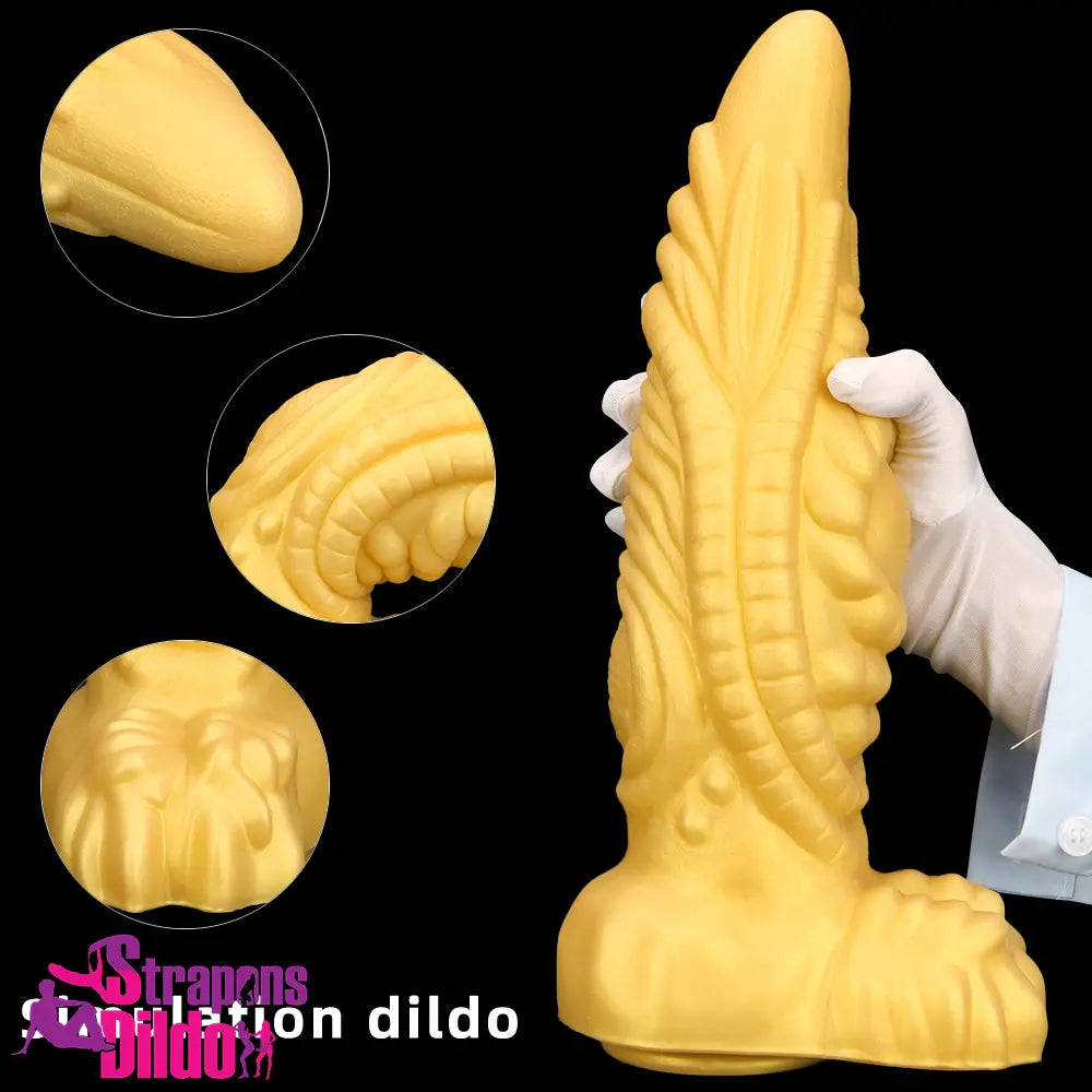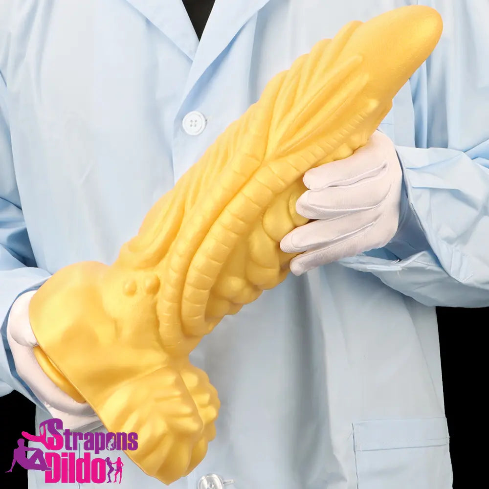 14.56in Gold Liquid Large Soft Thick Wide Long Fantasy Silicone Dildo