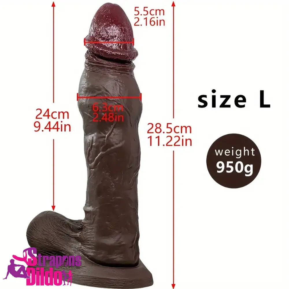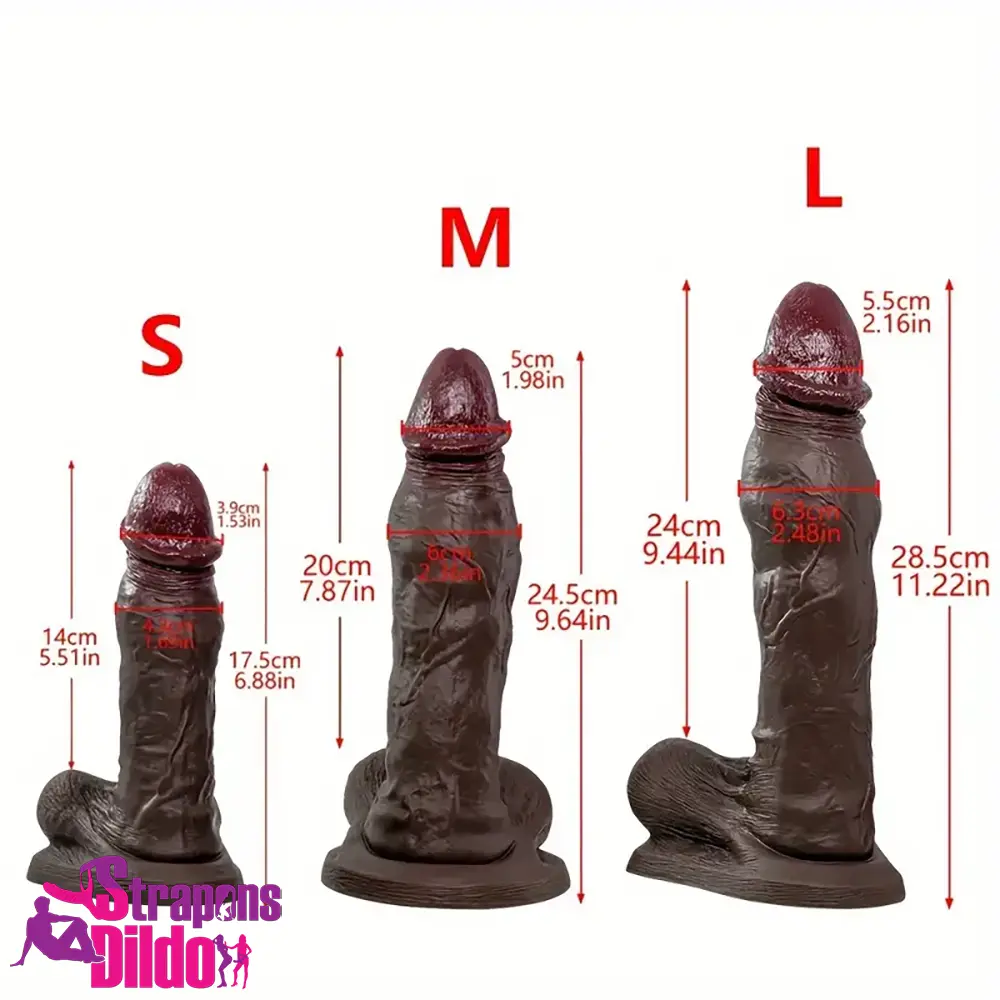 6.88in 9.64in 11.22in Realistic Big G-Spot Silicone Soft Ebony Skin Dildo