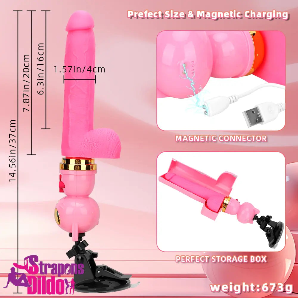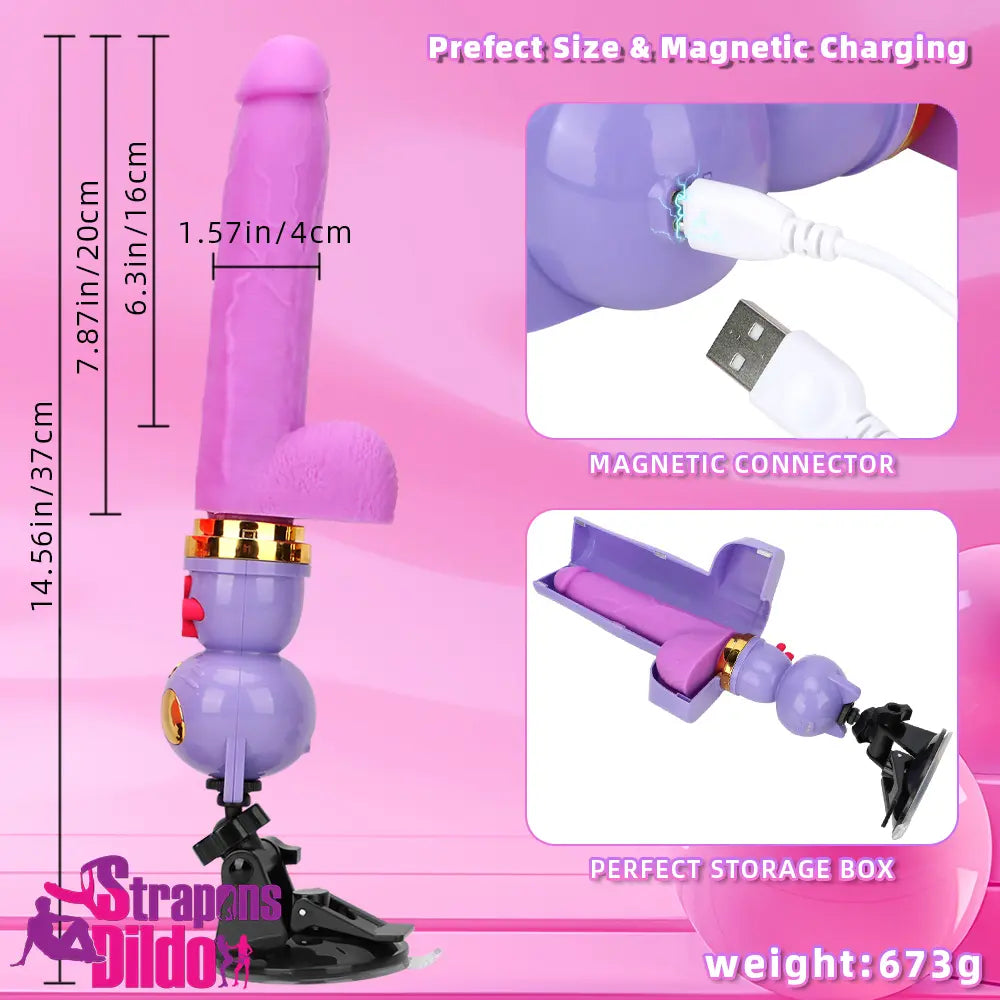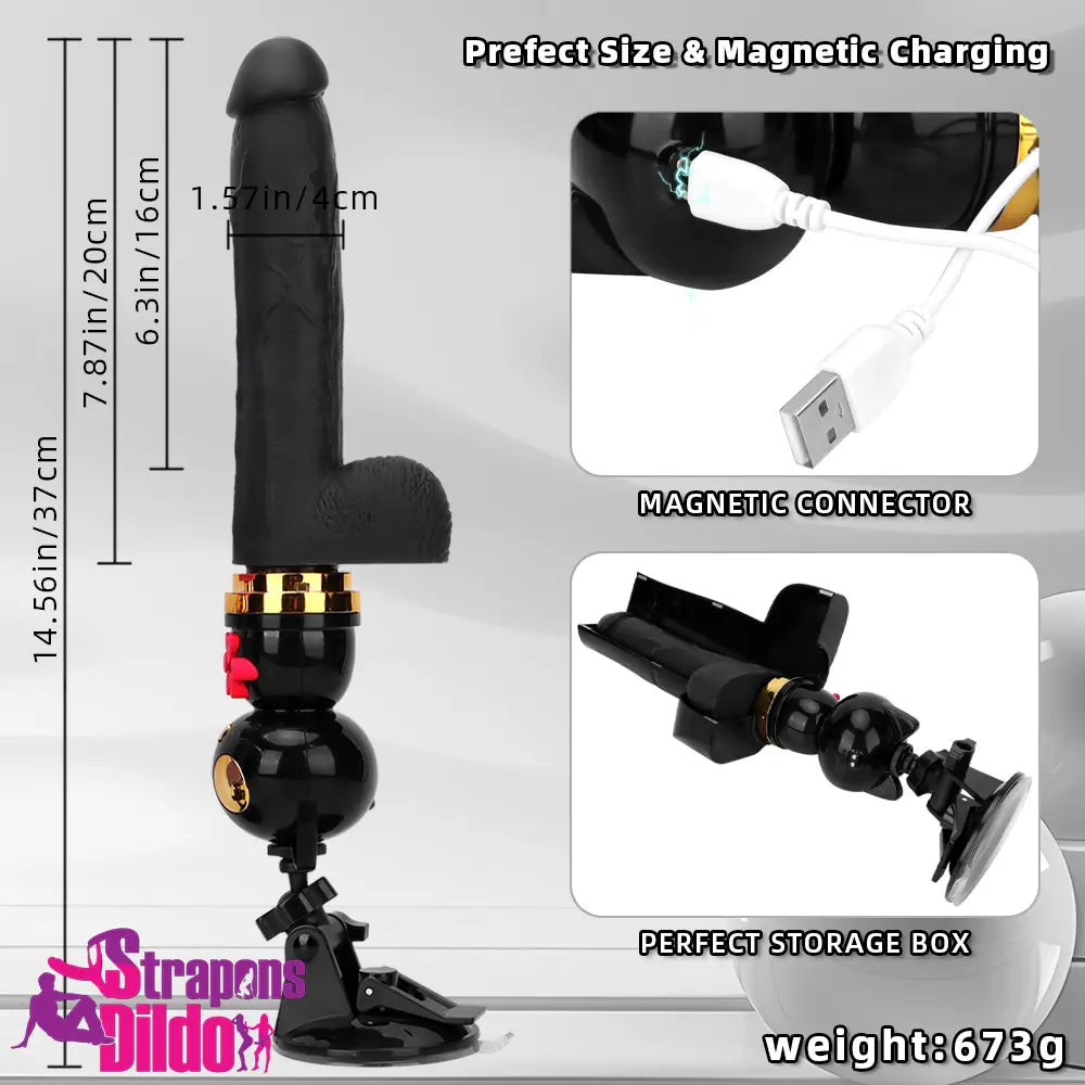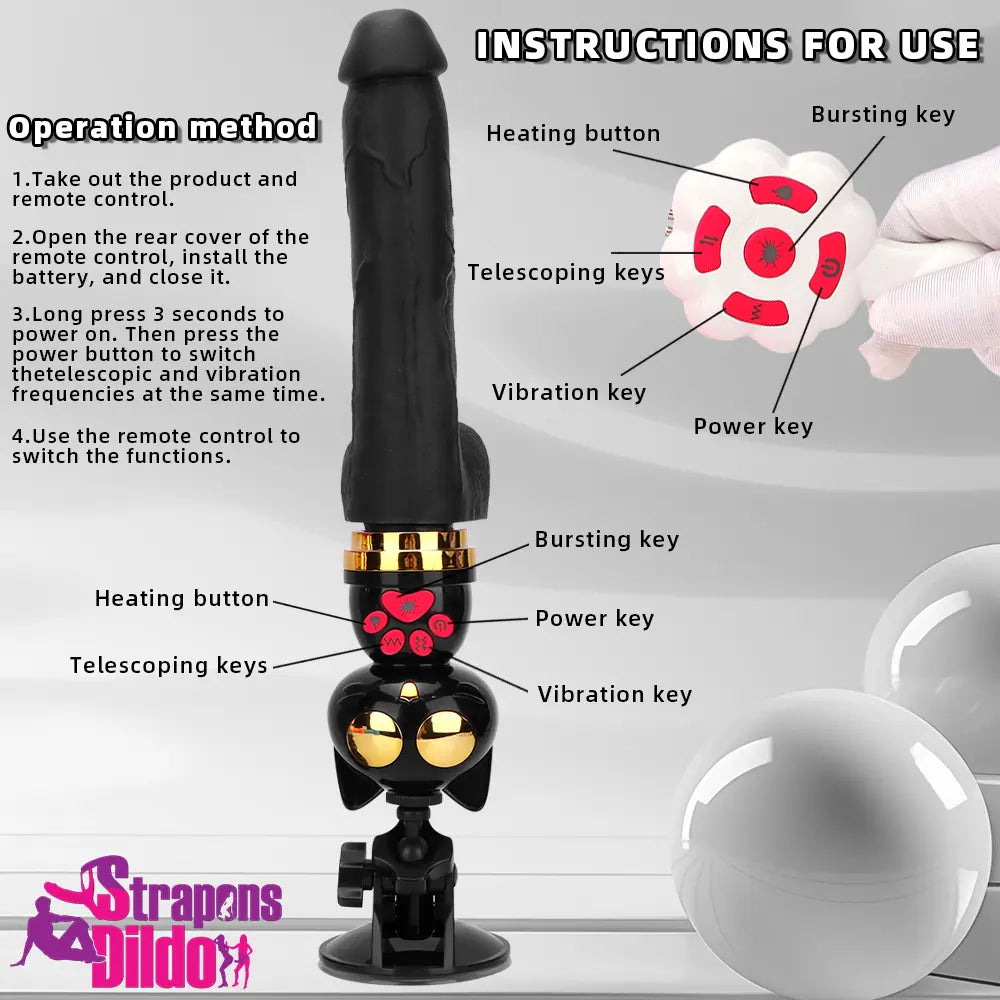 7.87in Cat Heating Thrusting Vibrating Remote Dildo Fucking Sex Machine