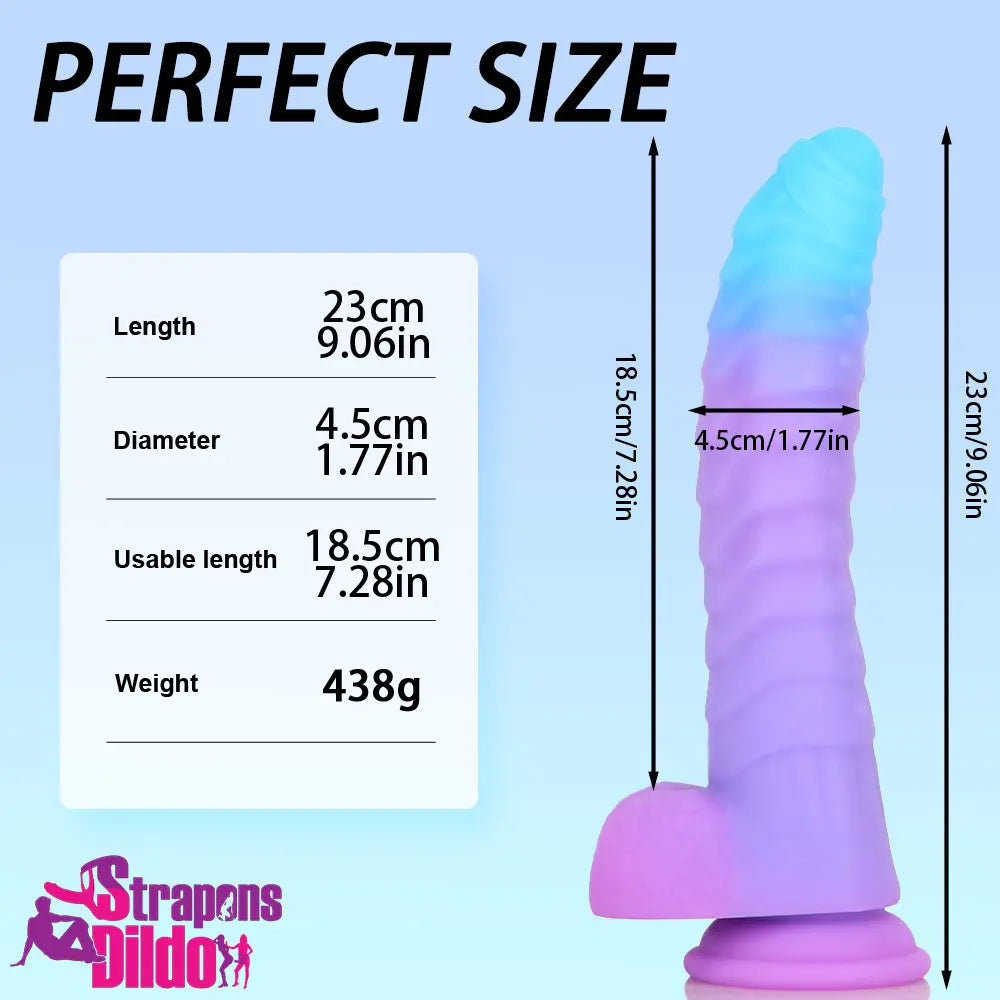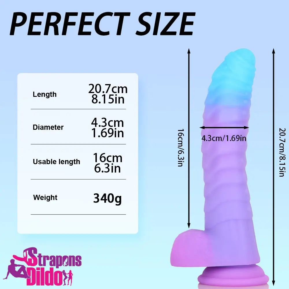 8.15in 9.06in Mixed Color Silicone Gradient Big Soft Odd Uncut Dildo