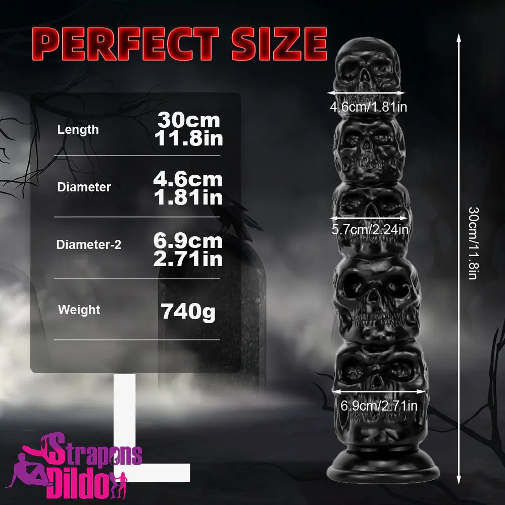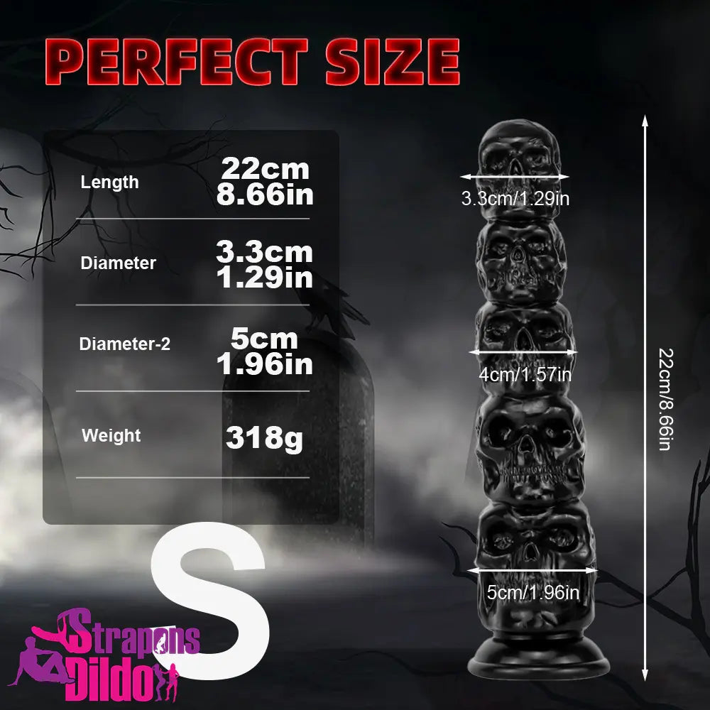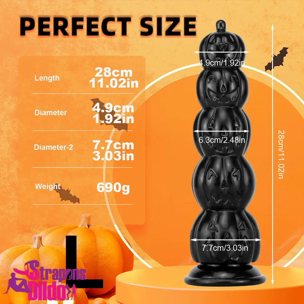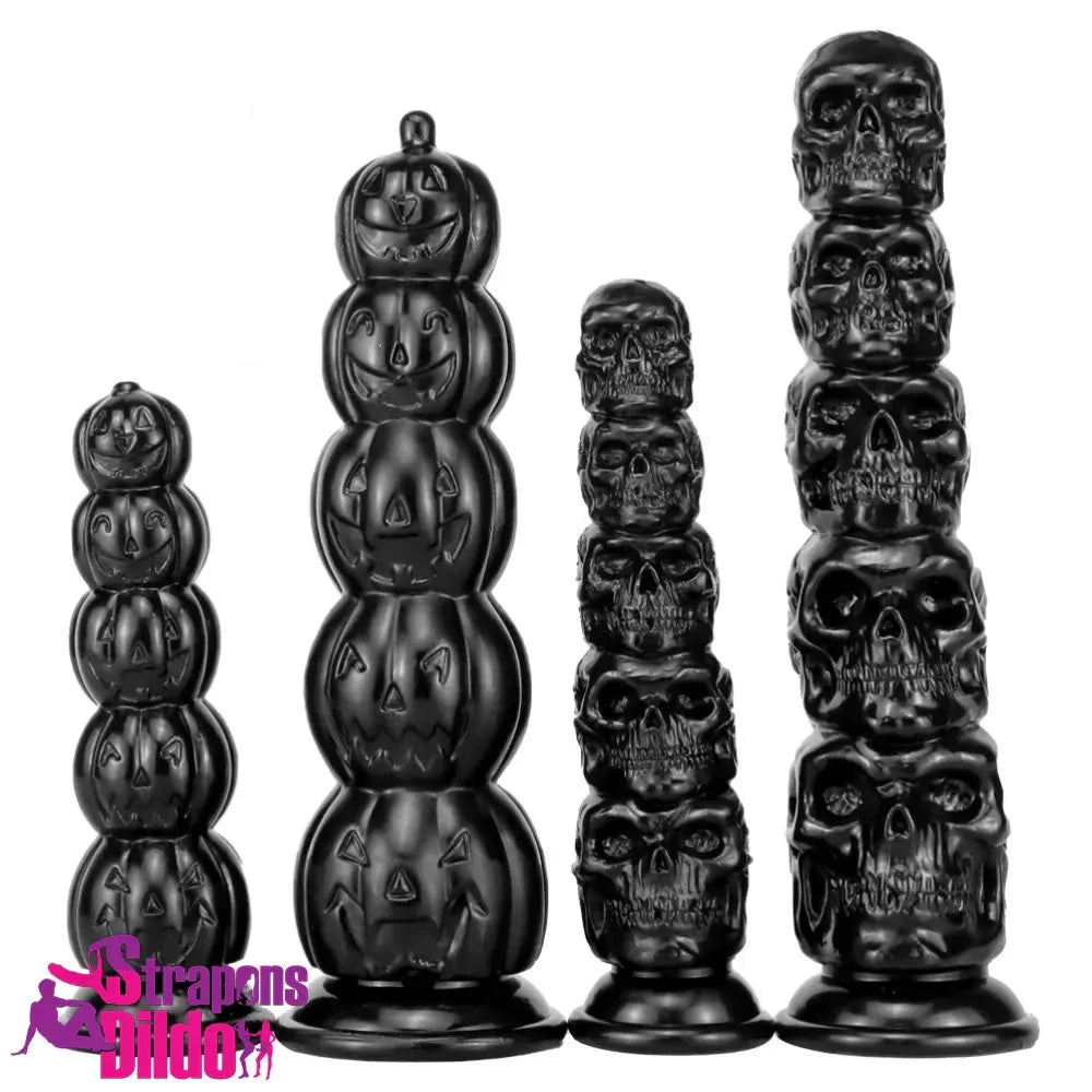 8.66in 11.86in 7.87in 11.02in Pumpkin Skull Odd Head Big Real Black Dildo